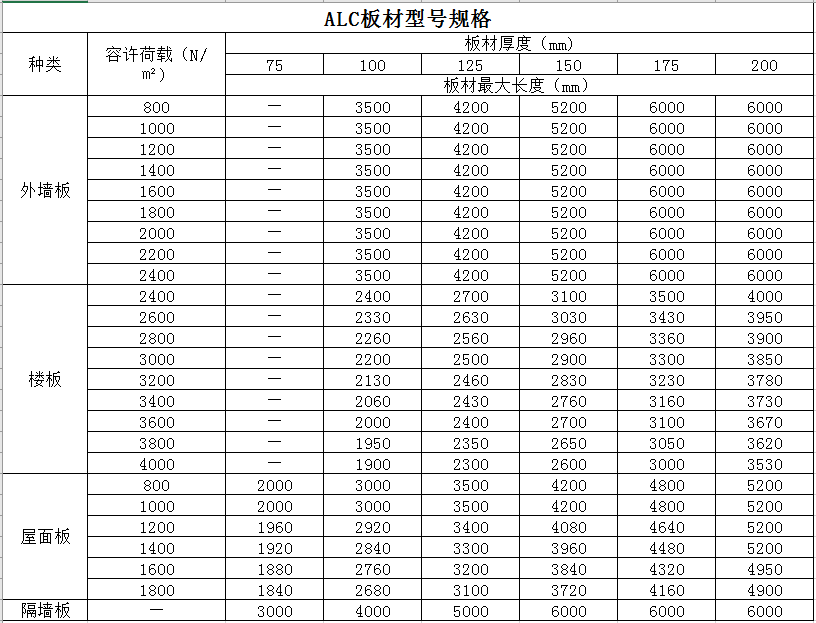 ALC板適用范圍